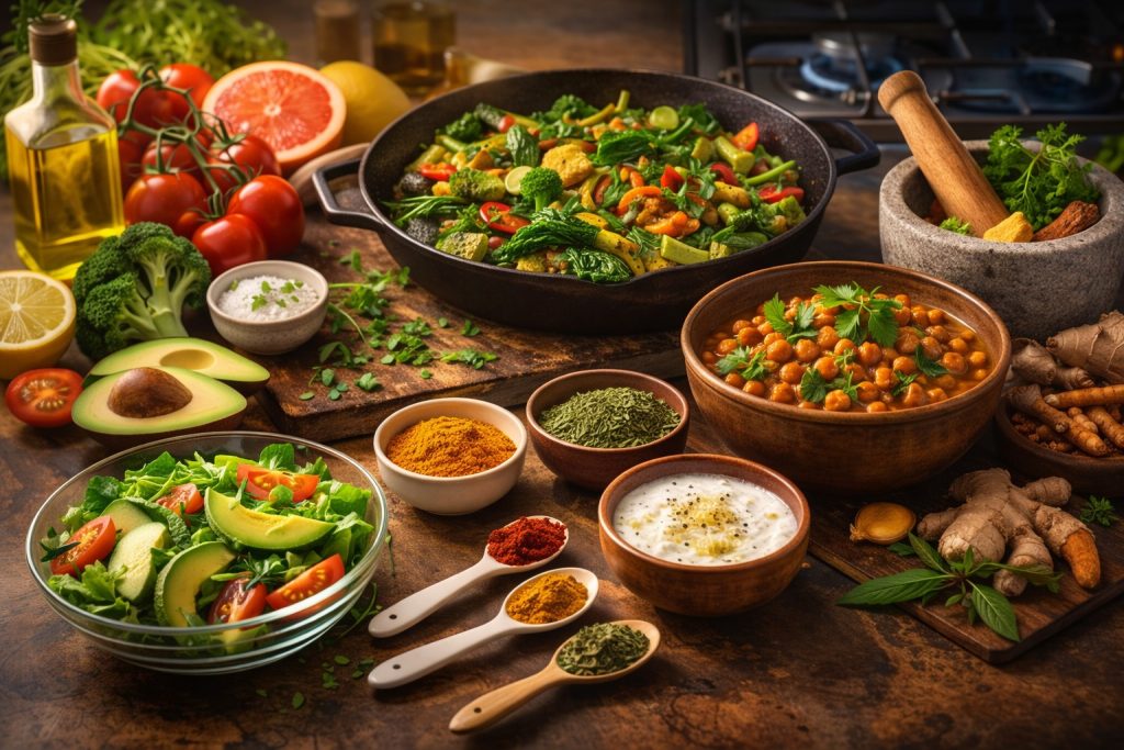 Modern cooking is having a moment of self-reflection. Concepts like acid–base balance, flavor layering, gut health, and anti-inflammatory meals dominate food media. While these ideas are useful, they often stop at chemistry or taste. Ayurveda—one of the world’s oldest food systems—approaches cooking from a different angle altogether: how food behaves in the body, not just on the plate.